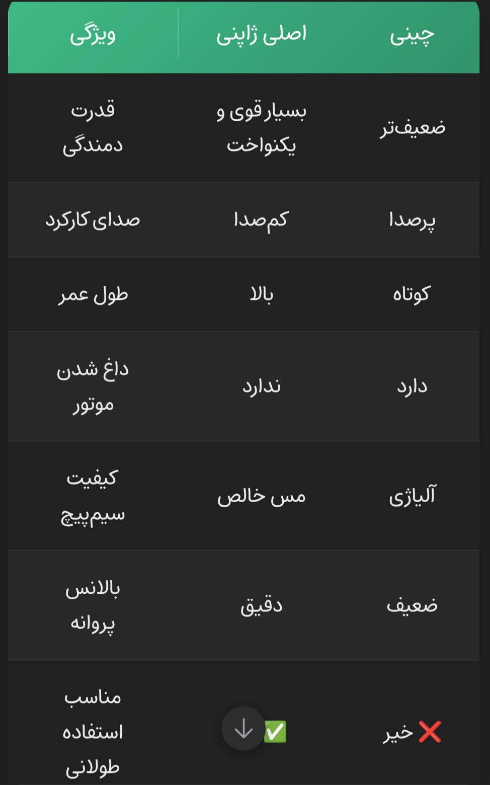 کیفیت ساخت: اصلی ژاپنی / درجه یک